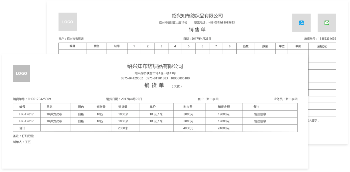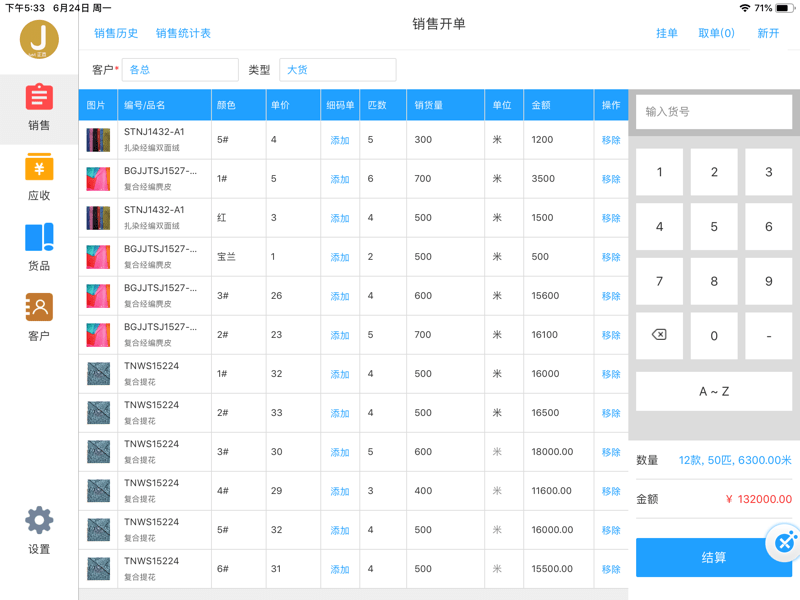 面料门市部销售开单,销售历史查询,销售报表统计。